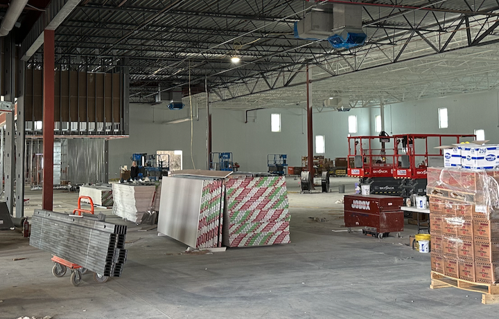 April 27, 2023 - the excitement continues inside with the framing of walls, painting of the track area, and rough-in of mechanical, electrical, and plumbing.