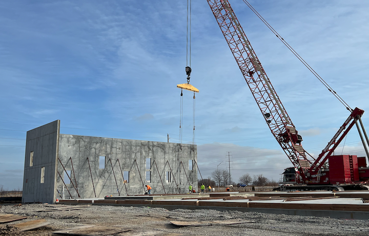 December 5, 2022 - an exciting day as the crane began to raise the tilt-up wall panels into place. Giving us our first look at what will become the exterior shell of the building.